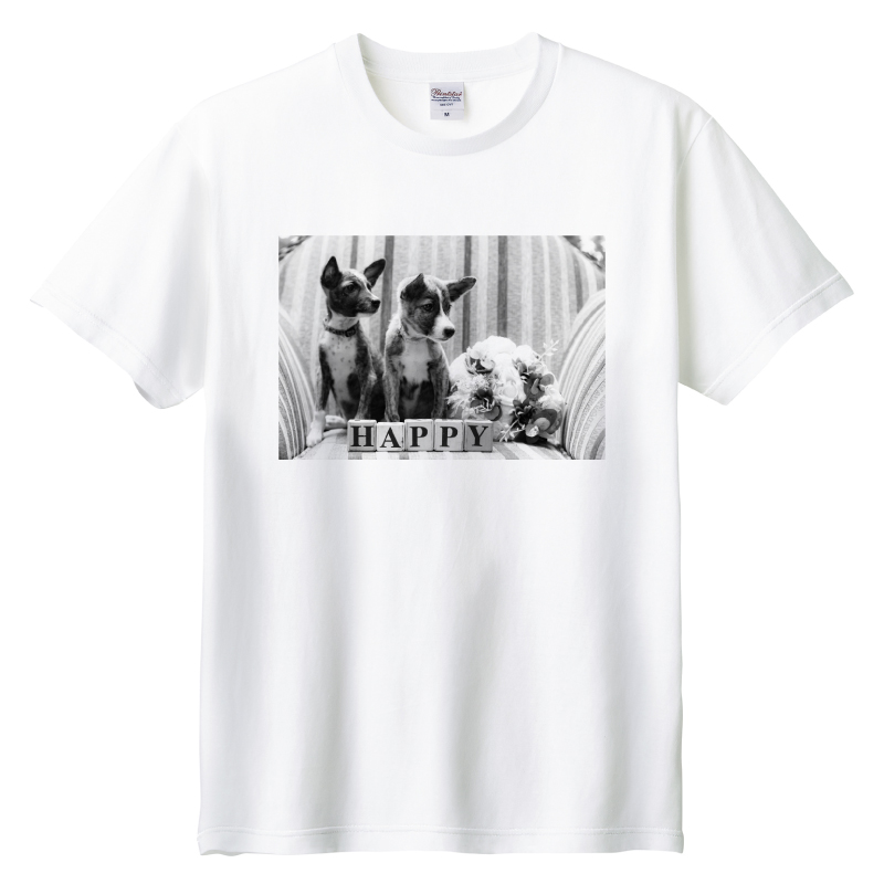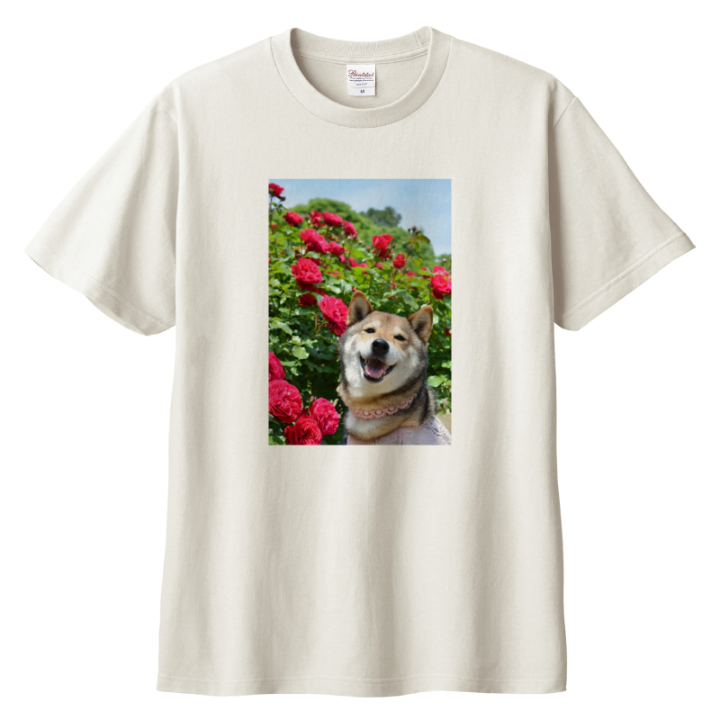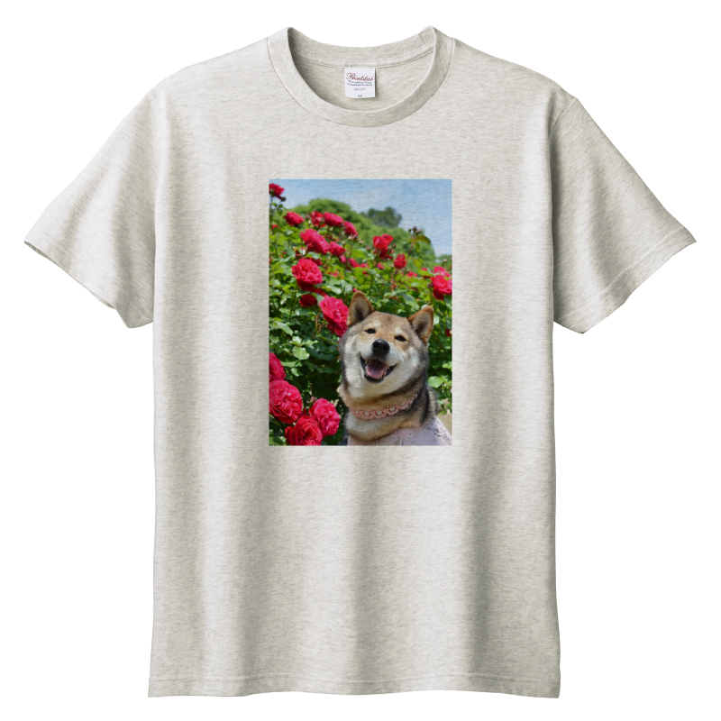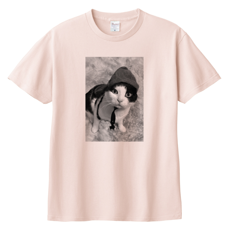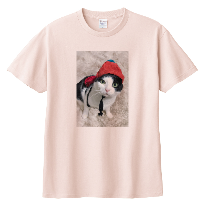 ふんわり淡い、優しい色のライトピンク。Tシャツ生地の色を受けて、肌の色やペットの白い毛の部分がTシャツ生地の色になりますが、淡いピンクなのでほぼ違和感ない仕上がりに。カラー印刷モノクロ印刷どちらもいいですが、カラーの方がかわいい印象。コントラストがはっきりとしていて濃いめの写真がおすすめ。