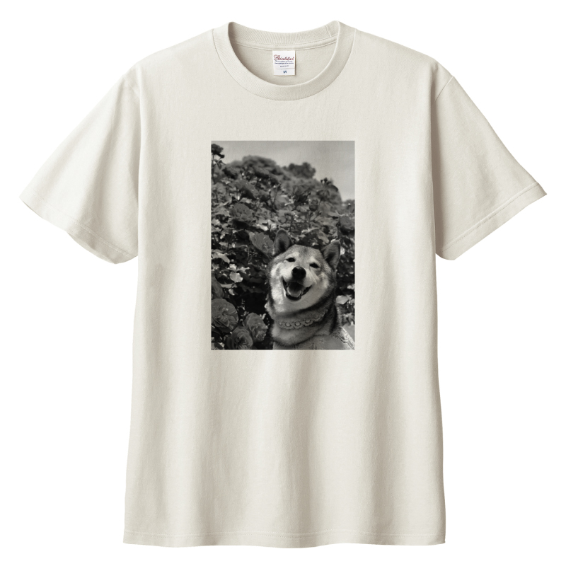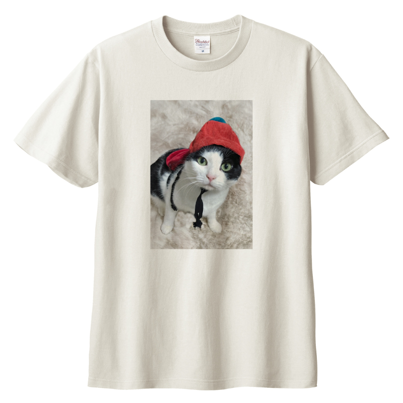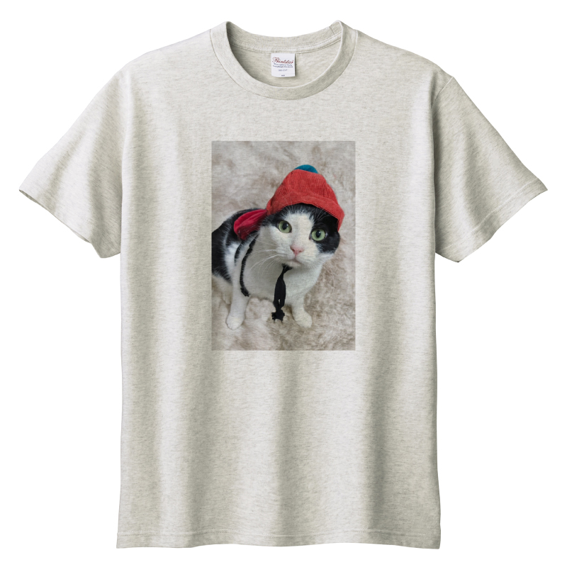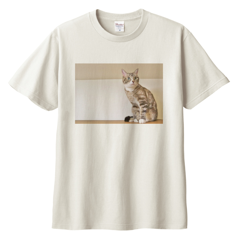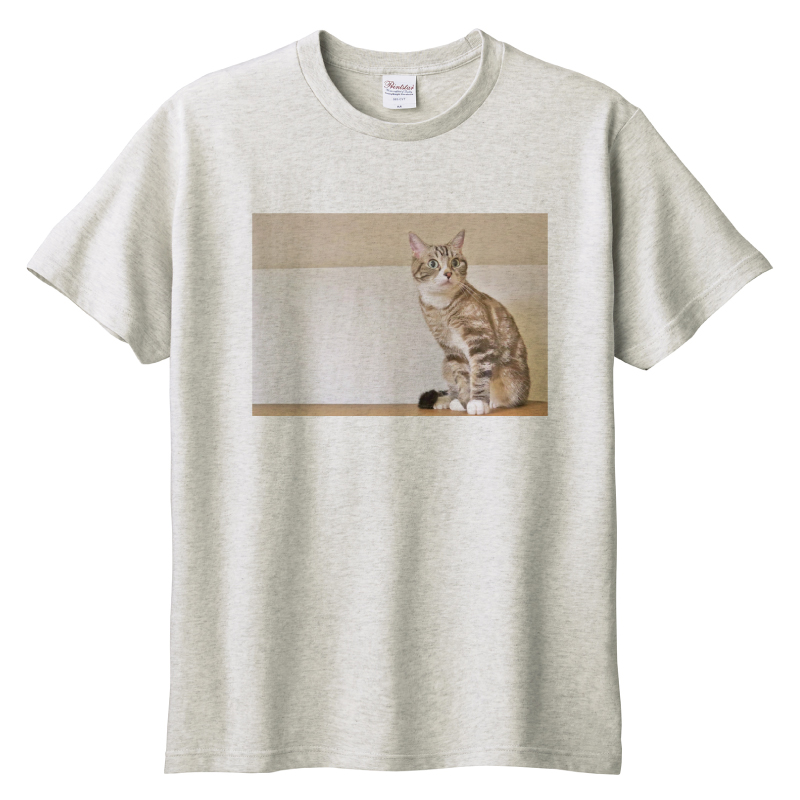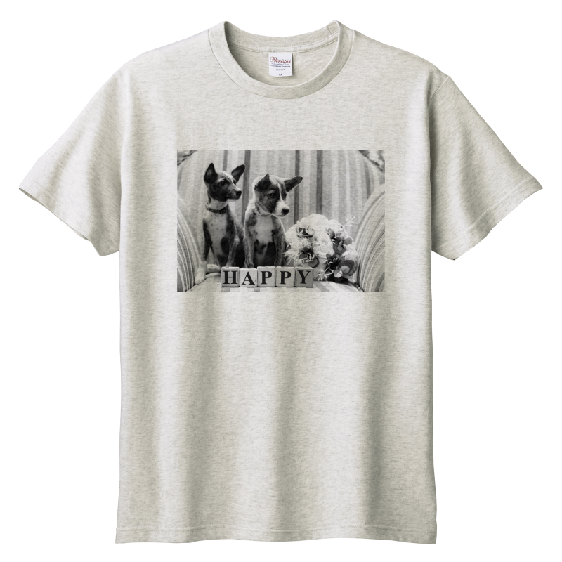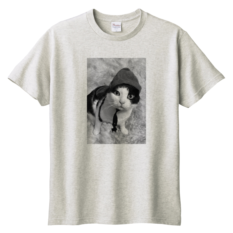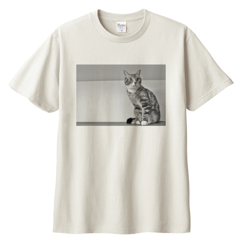 薄いグレーとベージュをミックスしたニュアンスカラーです。Tシャツ生地の色を受けてしまうので(肌の色やペットの白い毛の部分がTシャツ生地の色になります)、カラー印刷よりはモノクロ印刷の方が合います。コントラストがはっきりとしていて濃いめの写真がおすすめ。